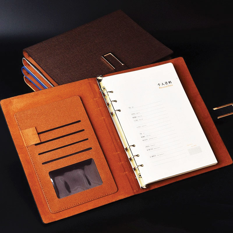 Sổ da bìa còng luôn được xếp vào dòng sổ da cao cấp bởi cuốn sổ sẽ không thể thiếu được trong các sự kiện, hội thảo quan trọng vì có những chi tiết gài name card cũng như gài bút rất tiện lợi cho người sử dụng.