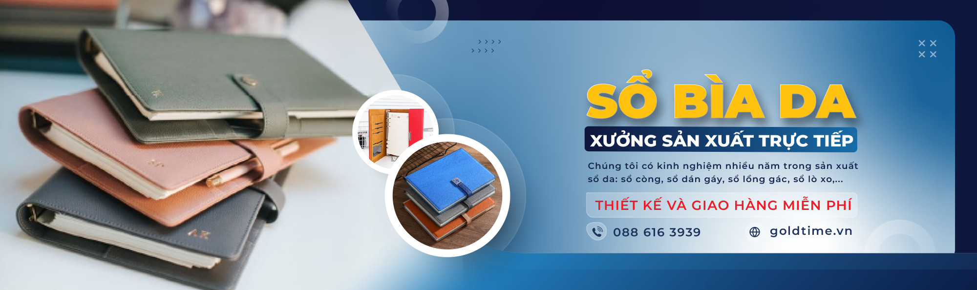Cơ sở sản xuất sổ bìa da GoldTime tự hào là một trong những xưởng sản xuất nhiều kinh nghiệm nhất tại Hà Nội, đáp ứng mọi nhu cầu đặt hàng sổ da của khách hàng.